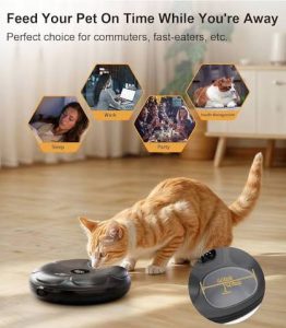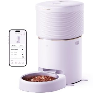 This pet feeder has 1080P Full HD camera and 2 ways clear audio which is allows to talk and see your pets anytime and also you can record a short video of your pet , features APP controller, connects to 2.4GHz and 5GHz Wi-Fi, you have to download the “ SMARTLIFE “ AAP to connect , multiple users to control the feeder which is very convenient this feeder also have low food sensor and a blockage sensor and notifications directly goes to your smart phone , set up to 10 meals and 1-20 portions per meal , per-day , easily customize feeding schedule and portion sizes . 5L capacity for multiple pet’s made with food grade PP material, non-toxic , detachable food bowl for easy cleaning .